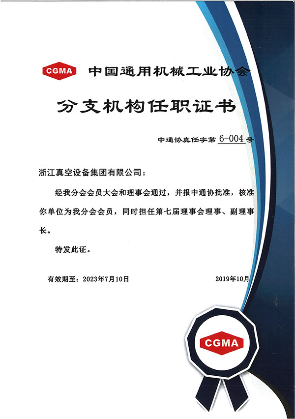 • 中國通用機械工業協會會員證書